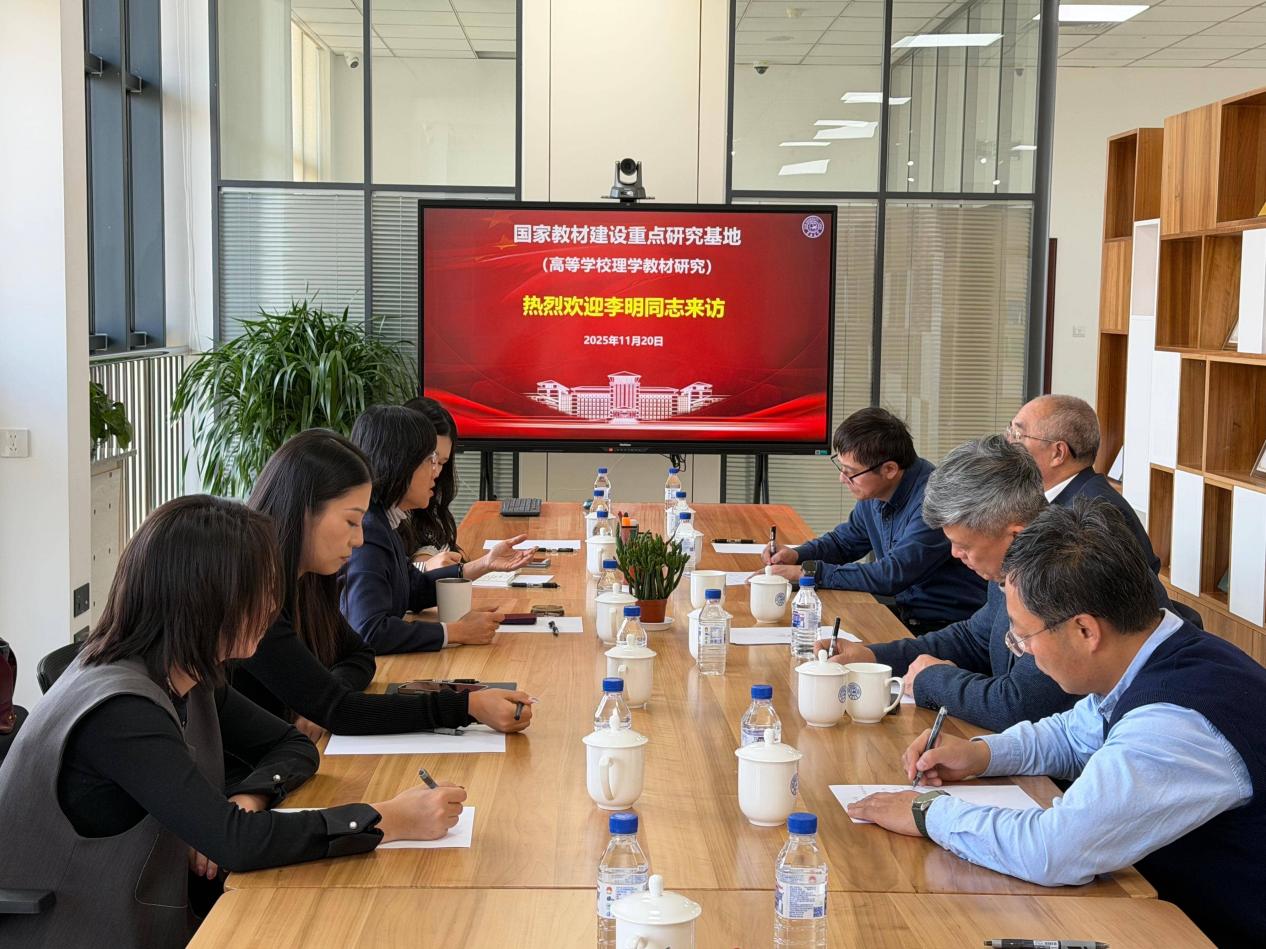 2025年11月20日,教育部教材局李明处长、吉林省教育学院教材中心李伟功主任参加国家教材建设重点研究基地(高等学校理学教材研究)中小学科学教育课程建设研讨会,与基地执行主任张汉壮教授、专职副主任郭玉鹏教授共同商讨相关课程与资源建设。