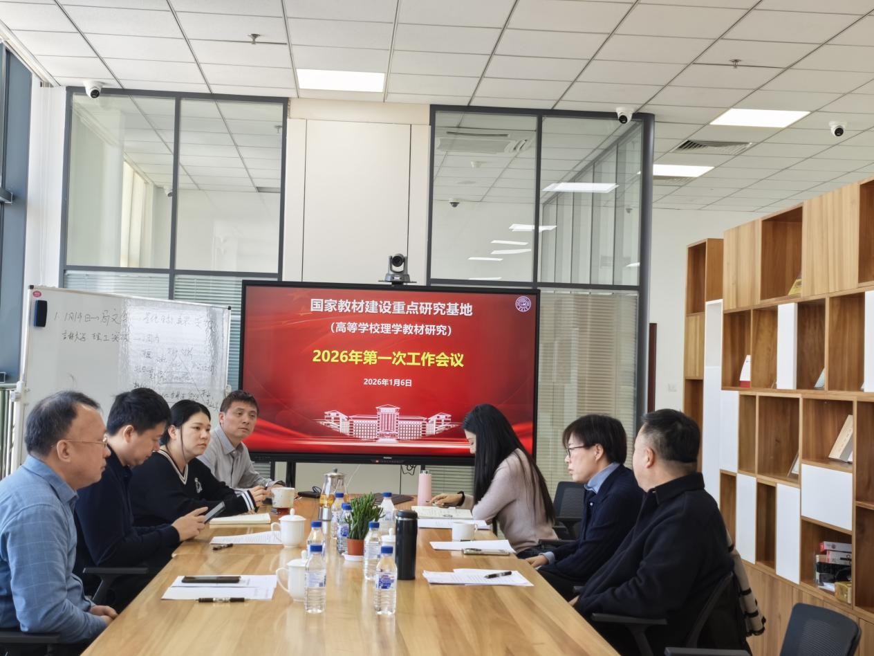 2026年1月6日,国家教材建设重点研究基地(高等学校理学教材研究)召开2026年度第一次工作会议。会议以 “建设范式跃升” 为核心主题,由基地专职副主任郭玉鹏教授主持,高彦伟教授、滕乐生教授、王莉教授、张大伟教授参会。